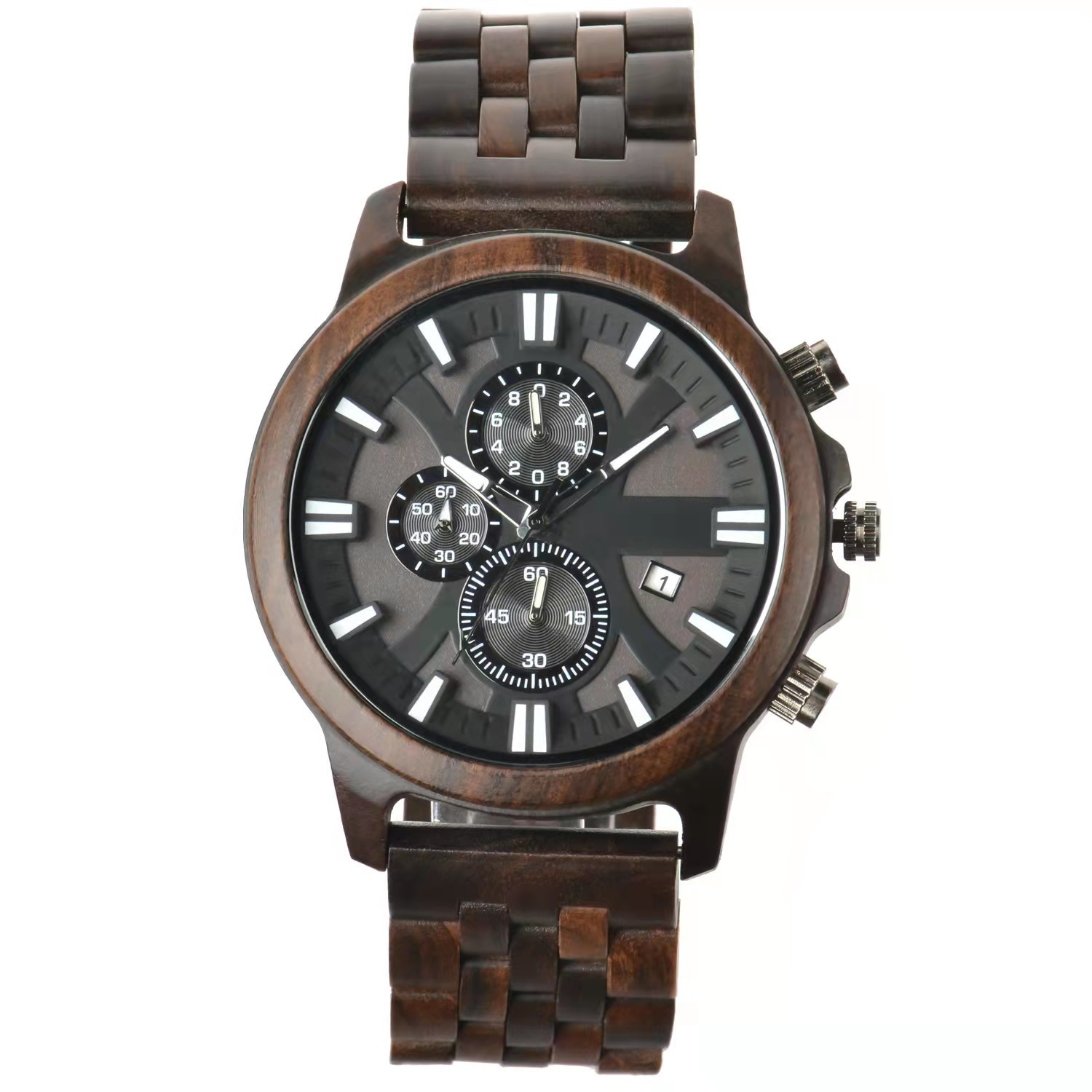 Mens Six Hand Chronograph Calendar Sports Wood Casual Watch