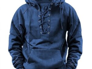 Men’s Outdoor Retro Lace-up Hooded Long-sleeved T-shirt Casual Top