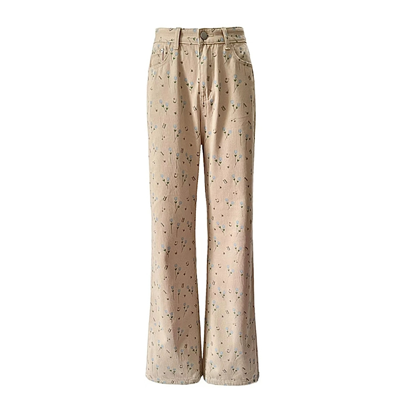 Plus Size Vintage Small Floral Jeans For Women Autumn Leisure Loose