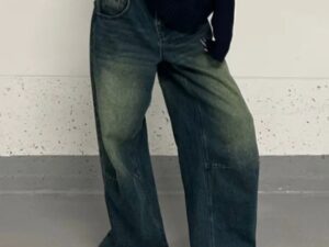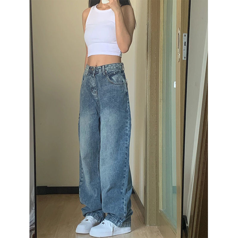 Raw Hem Wide Legs Jeans For Women Baggy Straight Trousers