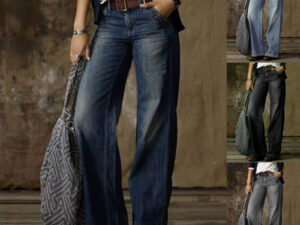 Plus Size High Waist Wide Leg Jeans For Women Mop Trousers