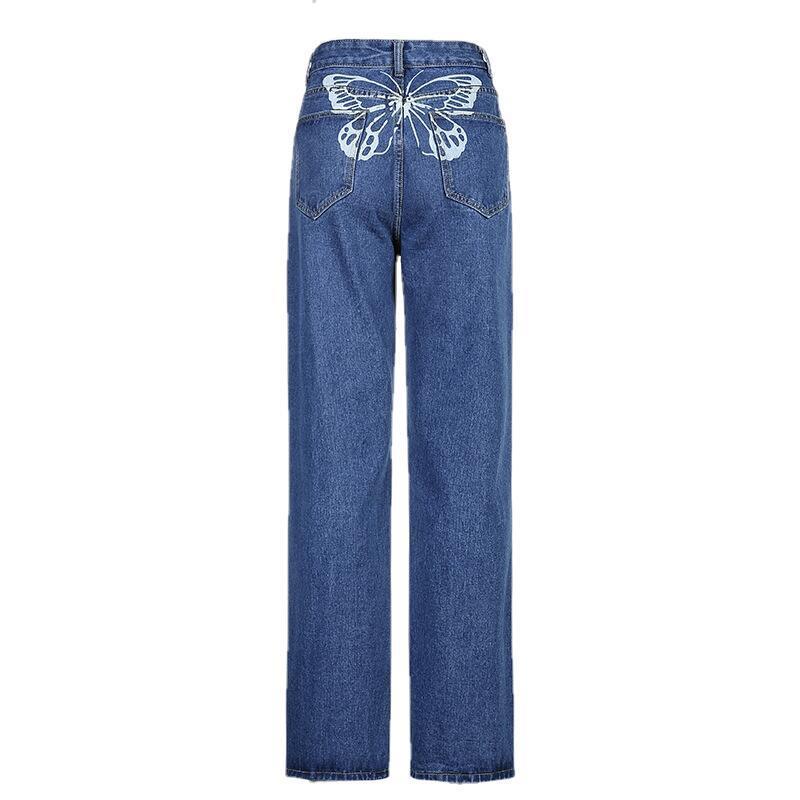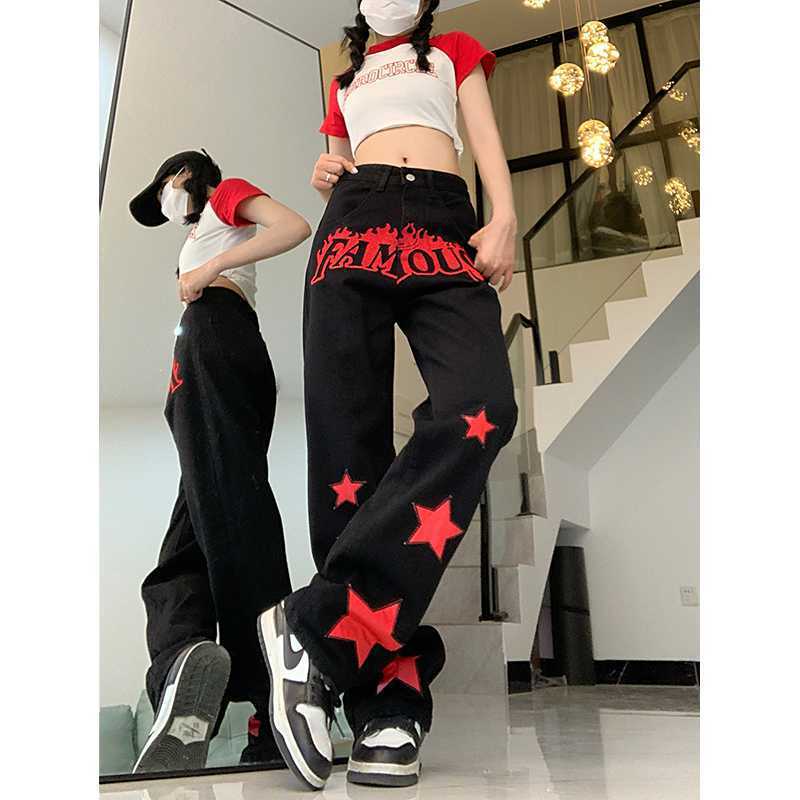 Red Star Letters Jeans For Women High Waist Casual Trousers