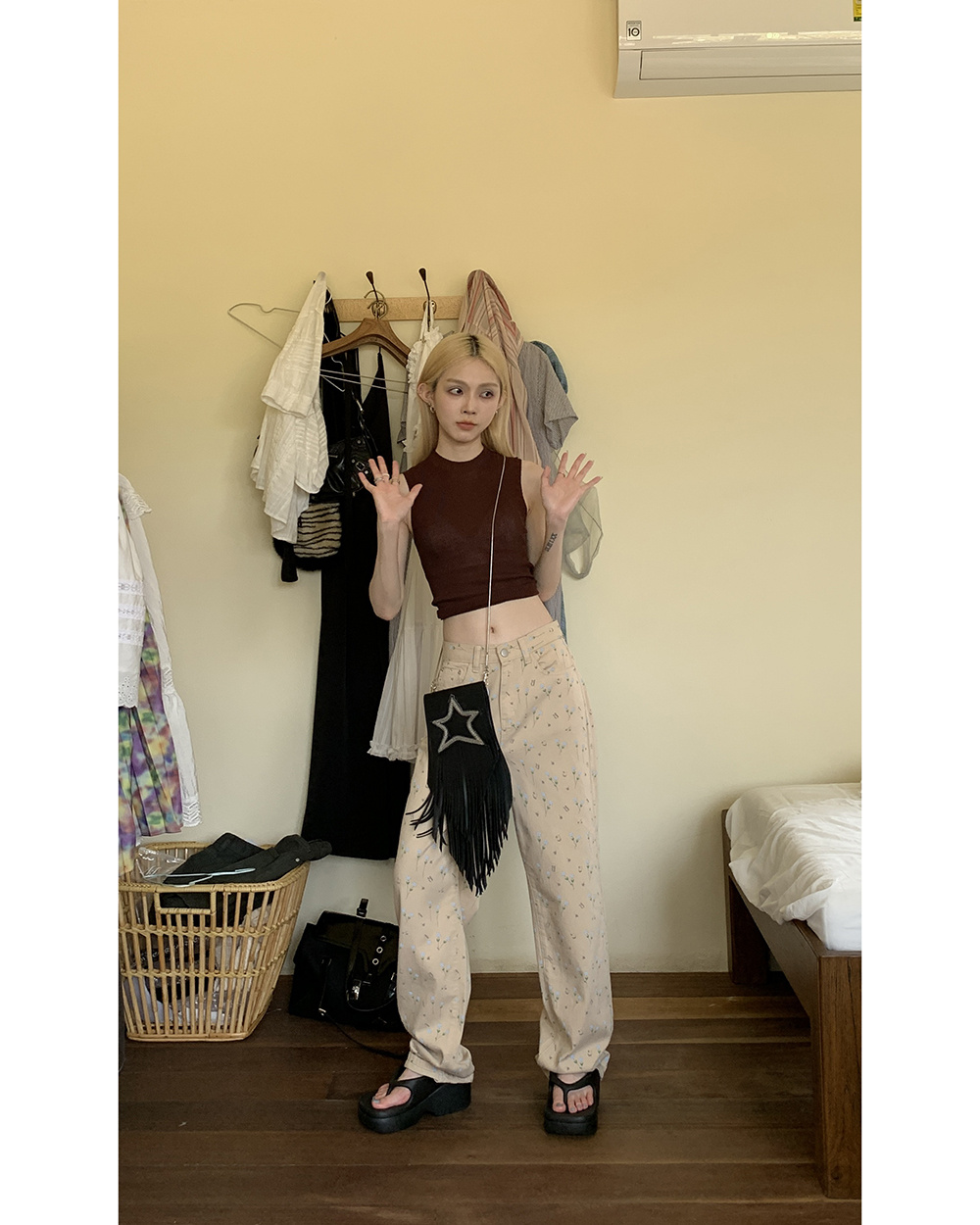 Retro Gradient Printed Washed Straight Skinny Jeans Women Women