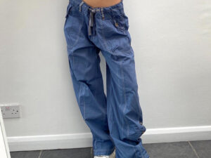 Street Casual Topline Waist Rope Retro Style Jeans Women