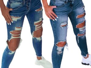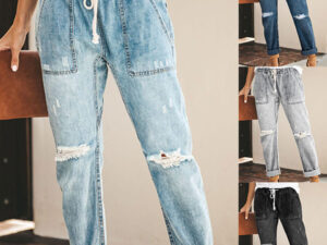 Splice Design Hiphop High Street Vintage Ripped Jeans For Women