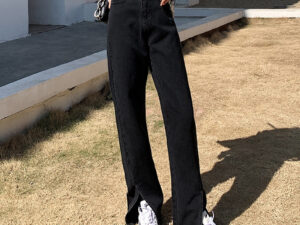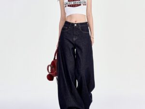 Street Personality Button High Waist Straight Wide Leg Jeans Women