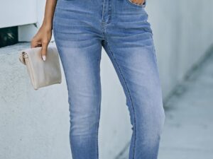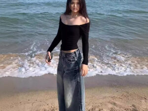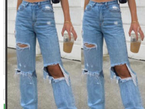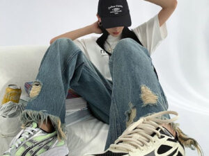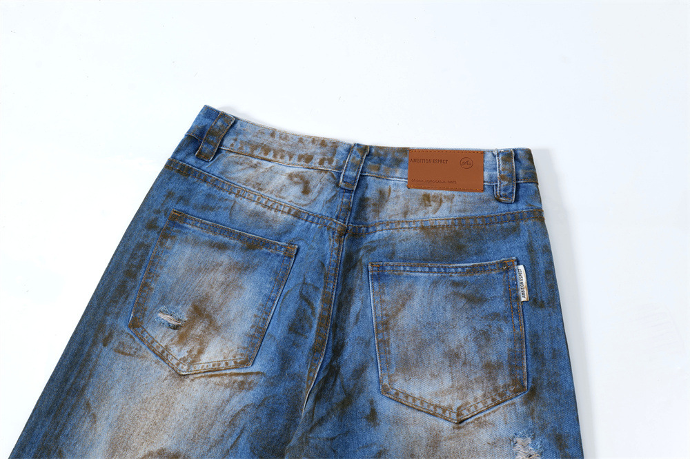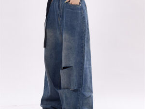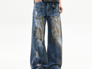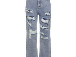 Distressed Straight Wide Leg Vintage Blue High Waist Jeans For Women