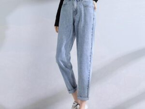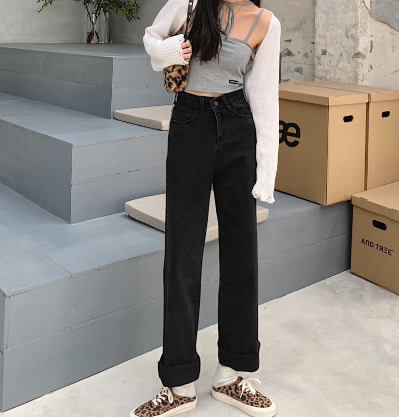 Double Buckle High Waist Loose Slim Jeans Women Covering Meat