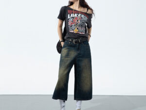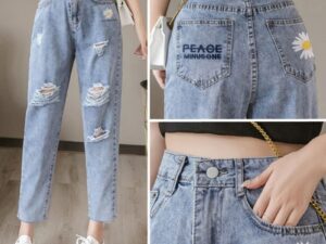 Embroidered Daisy Ripped Jeans Women Loose Cropped Trousers