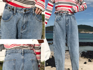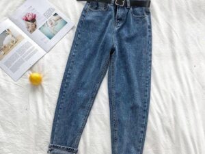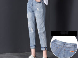 High Waist Nine-point Harem Daddy Women Pants Ripped Jeans Women