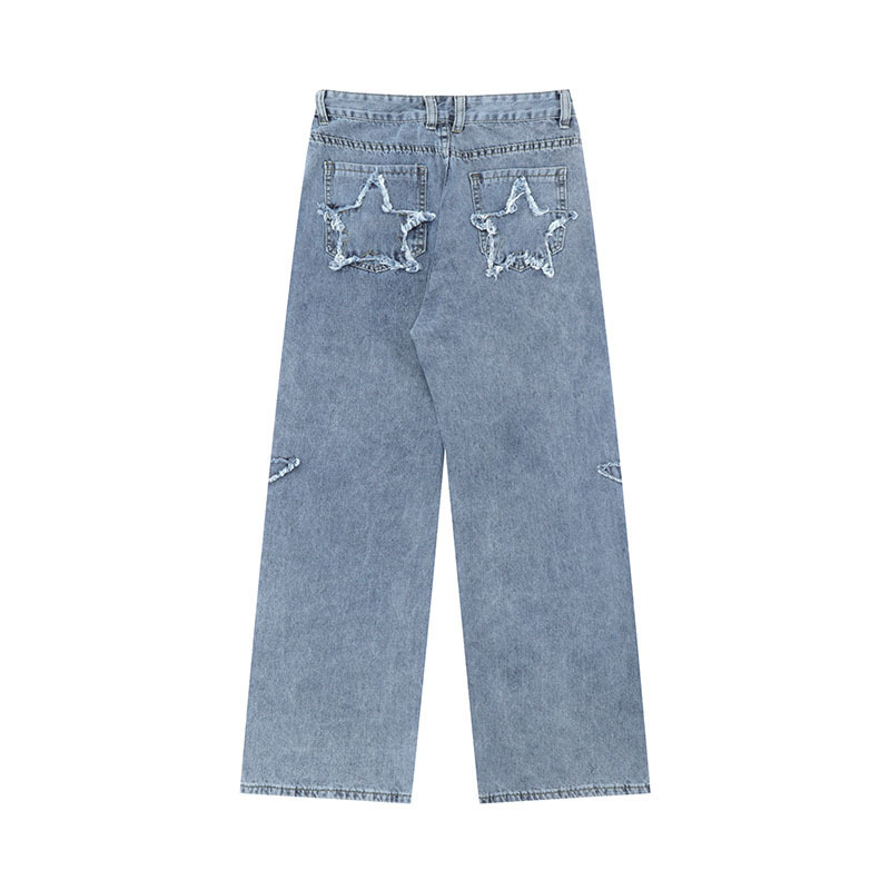 Five-pointed Star Affixed Cloth Embroidered Jeans For Men And Women