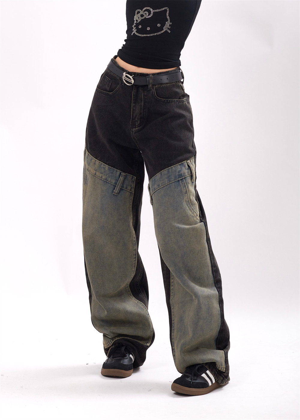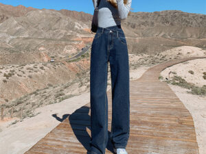 Fleece Thickened Wide Leg Pants Irregular Mopping Jeans High Waist Women