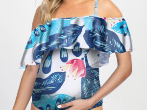 Maternity printed ruffled one-piece bikini