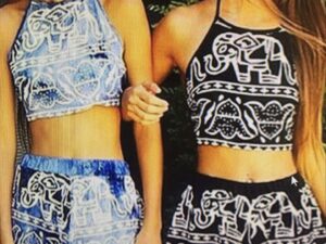 Mesh Skirt-Style Multicolor Print Bikini
