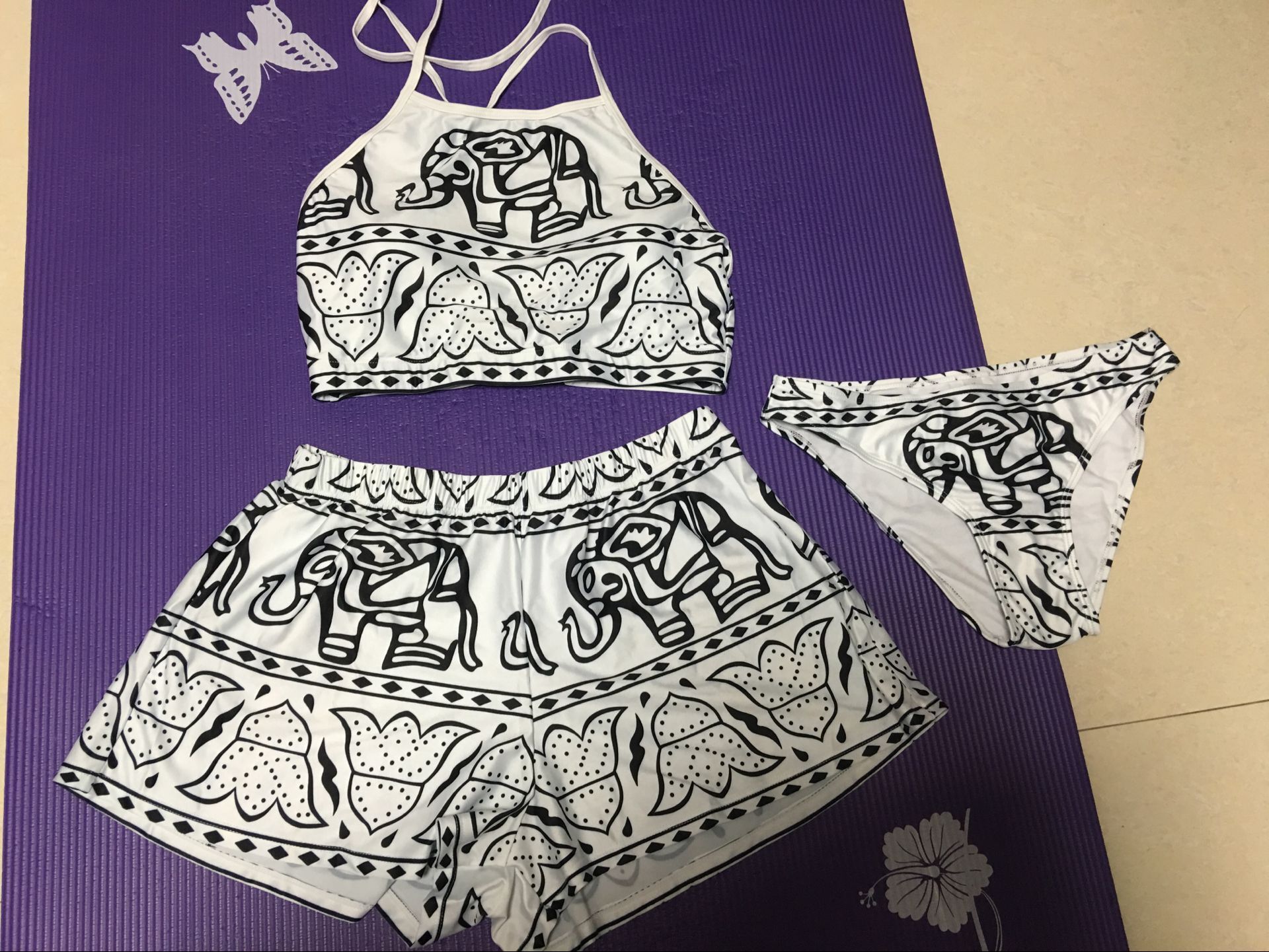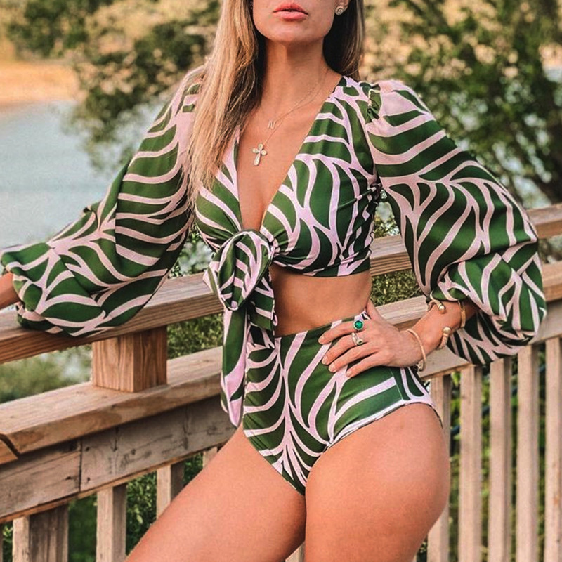 Long Sleeve Swimming Floral Sunscreen Diving Bikini