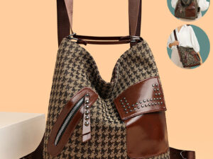 Shoulder bags and TotesSelect options This product has multiple variants. The options may be chosen on the product pageHoundstooth Backpack Women Fashion Rivet Design Leopard Shoulder Bags