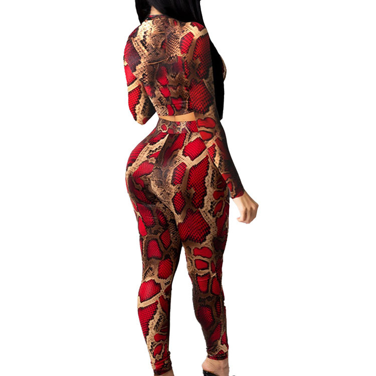 Two-piece Skinny Snake Print Long-sleeved Trousers
