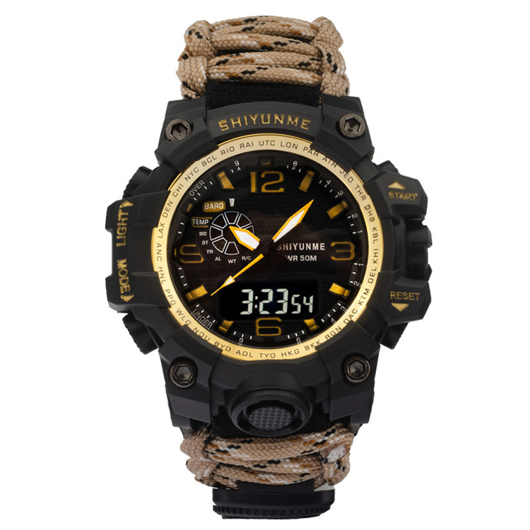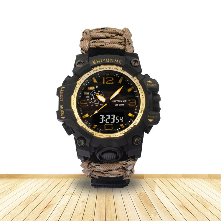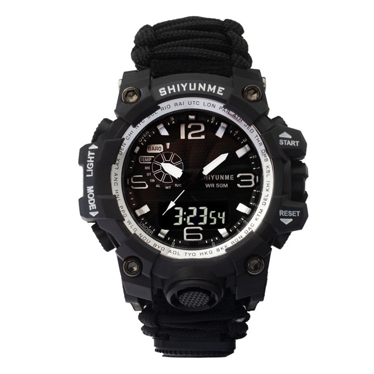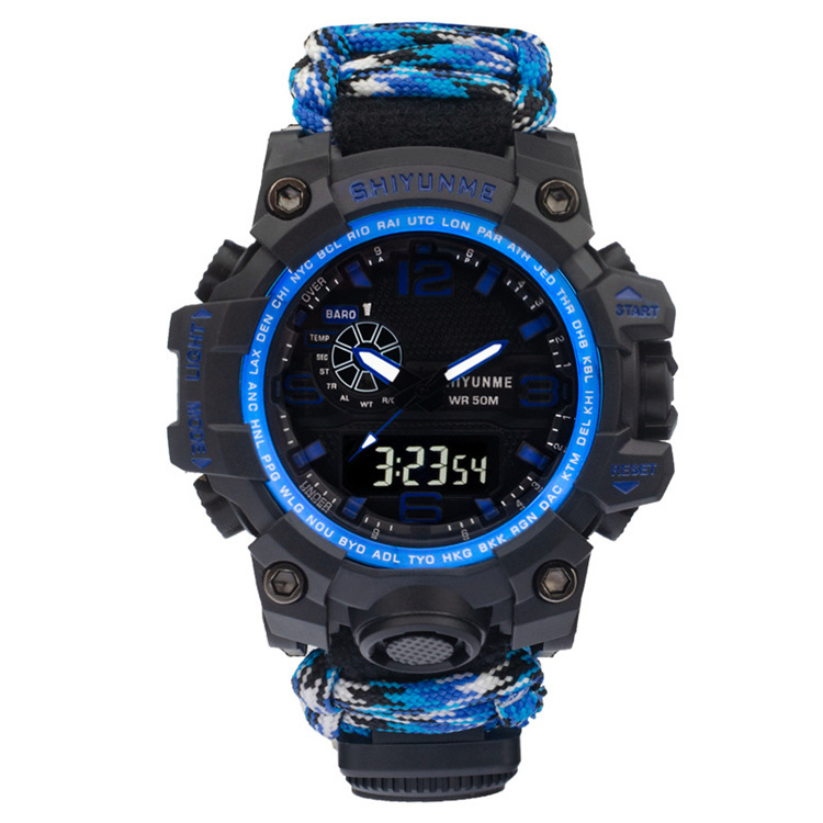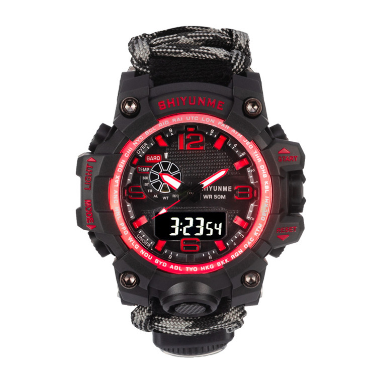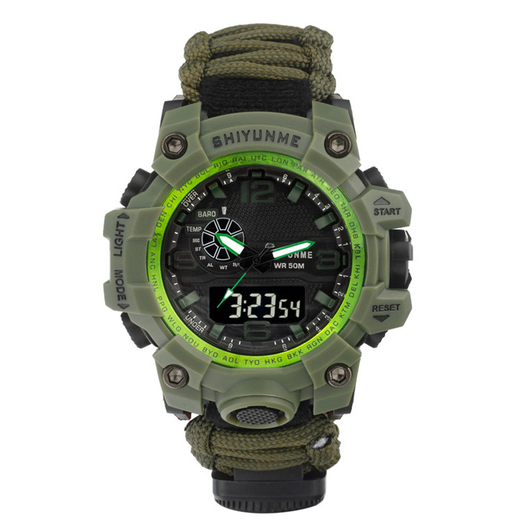 Special functions: thermometer, luminous, alarm, compass, calendar, small three-handed, 24-hour indication, week display, month display