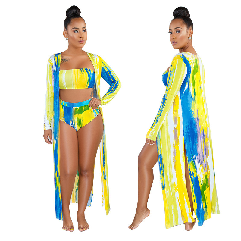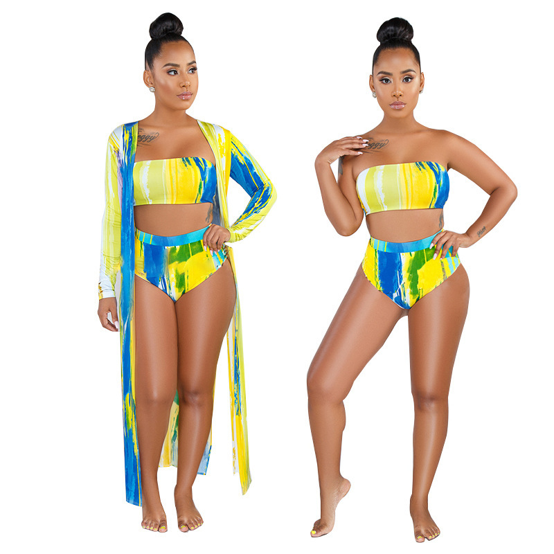 Popular elements: three-piece print, stitching, and chest-wrapped shawl