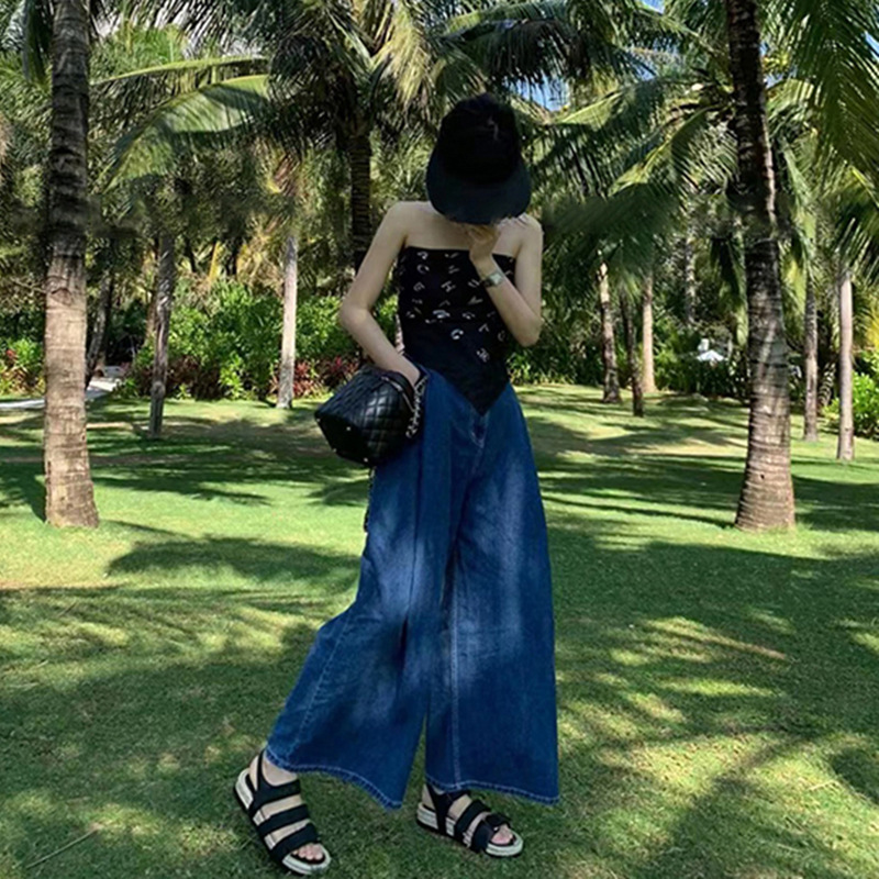 Retro Simple Commuter Temperament High Waist Thin Wide Leg Jeans Women