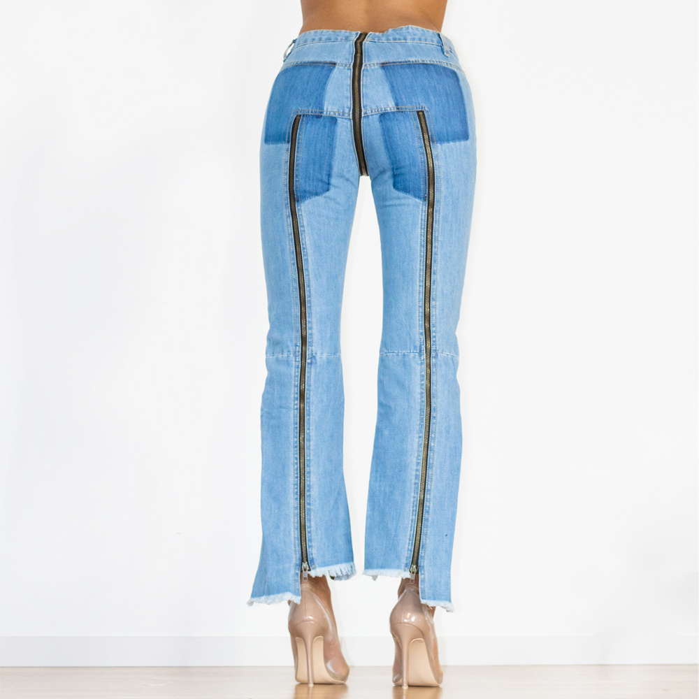Shascullfites Women Split Straight Jeans Women Club Dancing Pants Light Blue Denim Pants Slim Fit Zipper Jeans