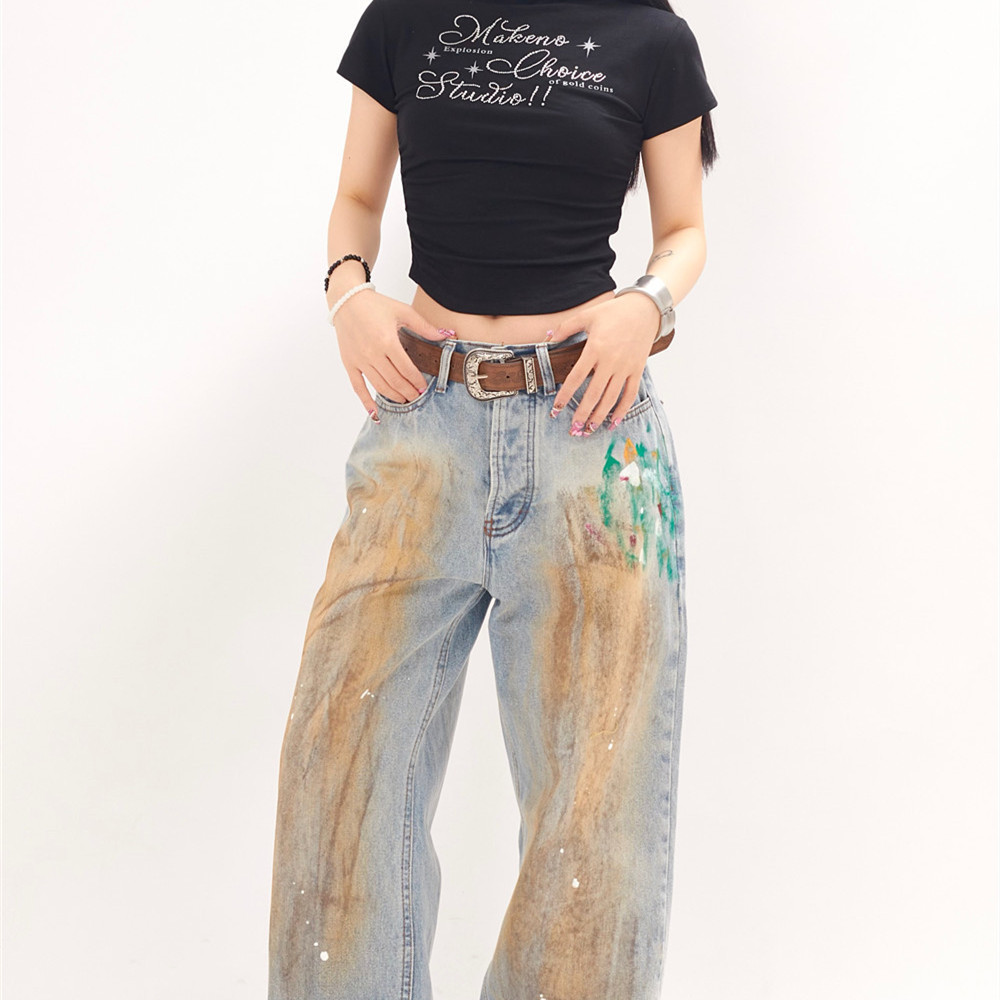 Splash-ink Wide-leg Jeans For Men And Women