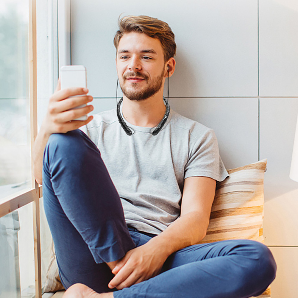 Neckband designed Bluetooth headphones, the best companion while running, jogging, or gym.