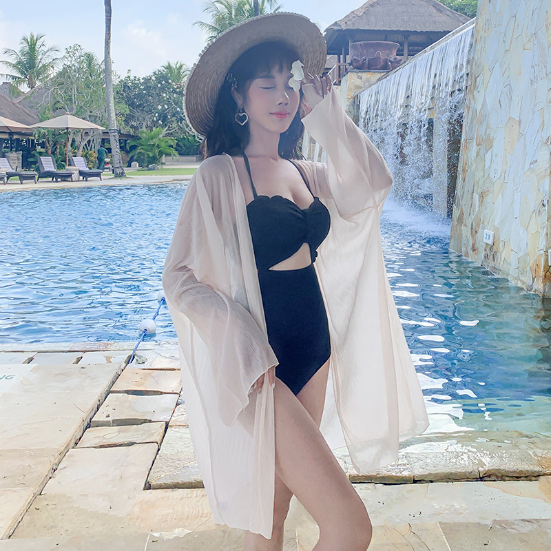 Color classification: apricot jacket, white jacket, black one-piece swimsuit, swimsuit + apricot jacket, swimsuit + white jacket, swimsuit type: casual swimsuit
