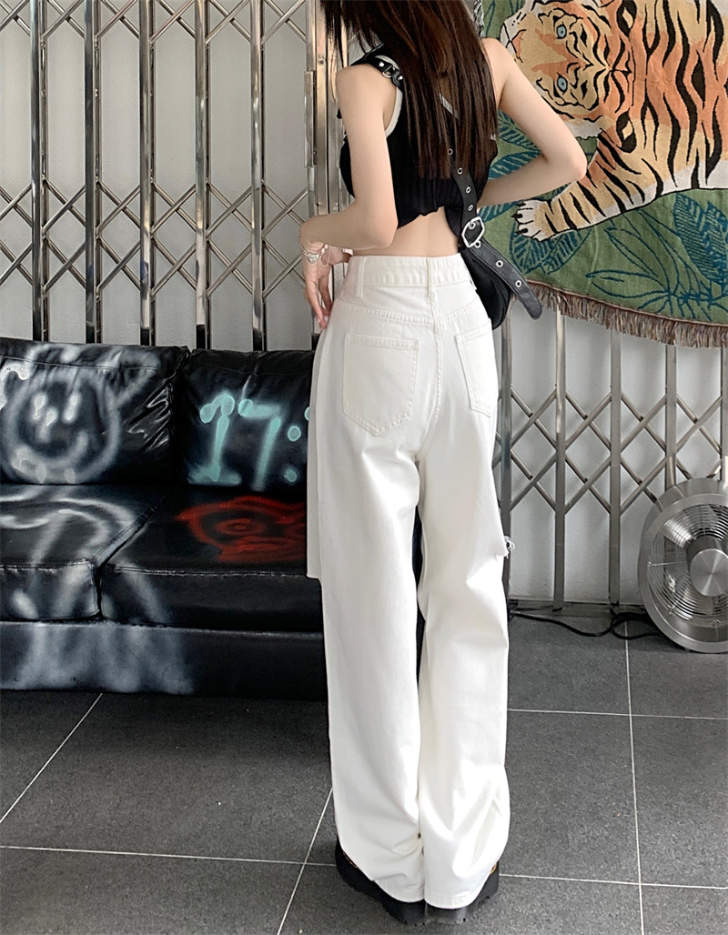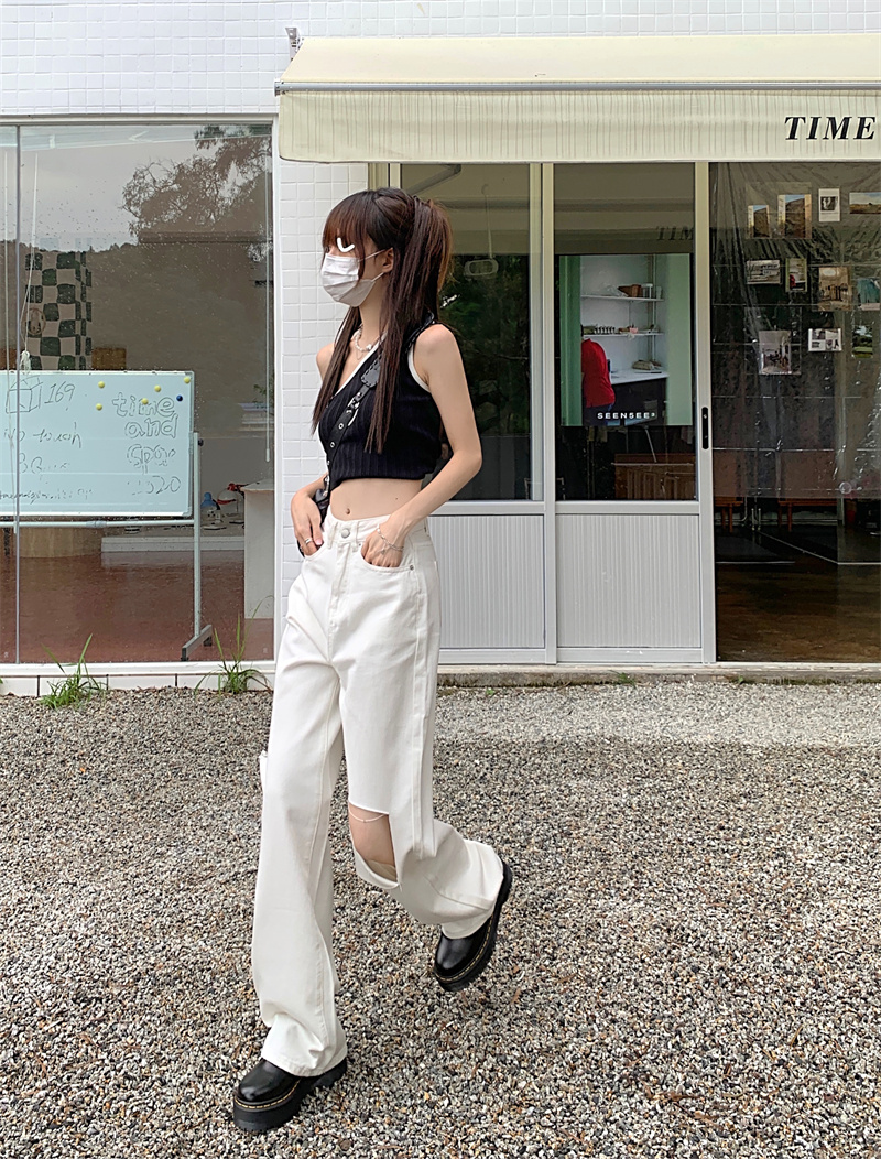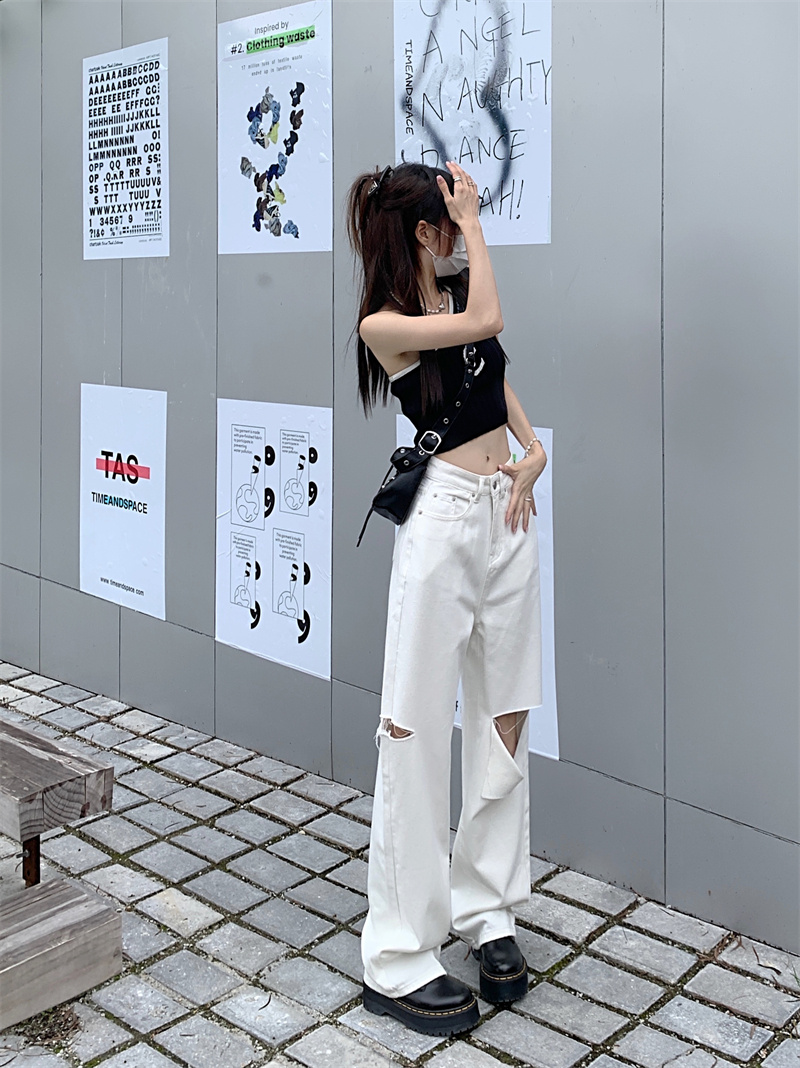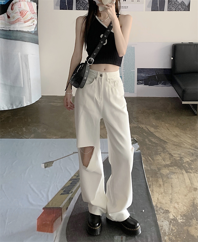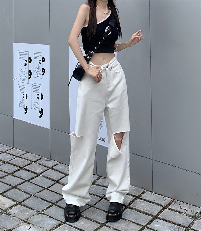 White Hole Straight Jeans Women”s Summer Ins Small Loose