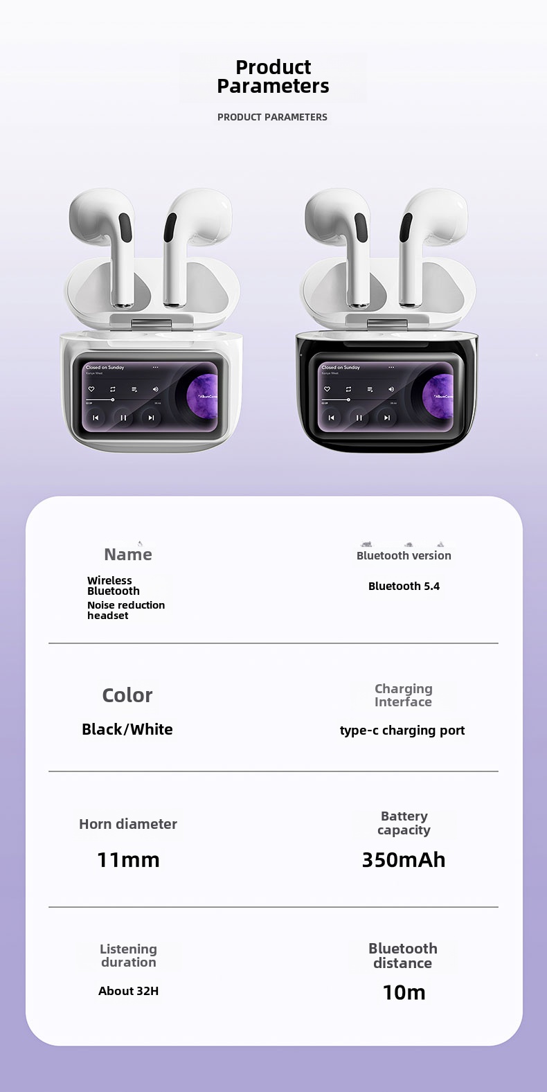 - Function: LCD digital display, ENC active noise reduction