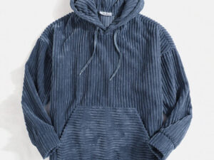 2022 Men’s Sweater Thick Corduroy Long Sleeve Solid Color Kangaroo Pocket Hanging Shoulder Hoodie