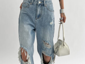 Light Raw Hem High Waist Wide Leg Jeans For Women Summer New