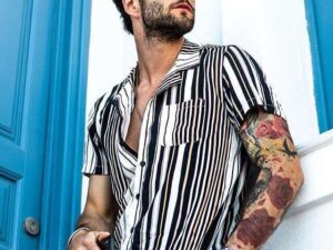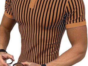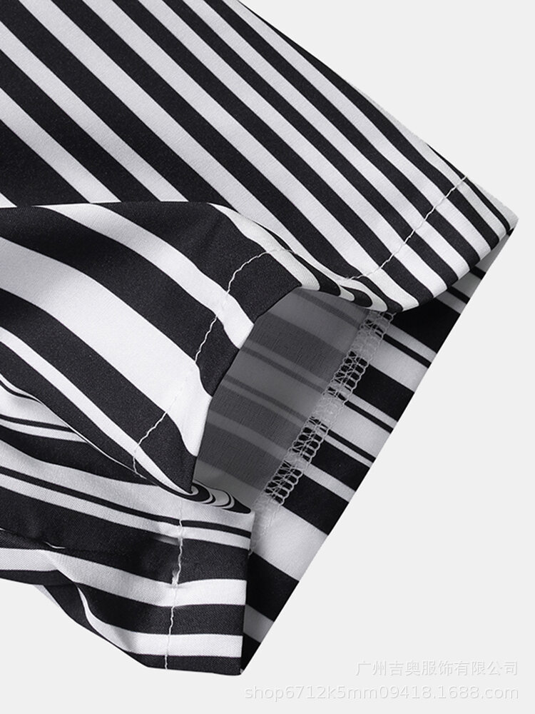 Men Striped Shirts Causal Short Sleeve Lapel Blouse