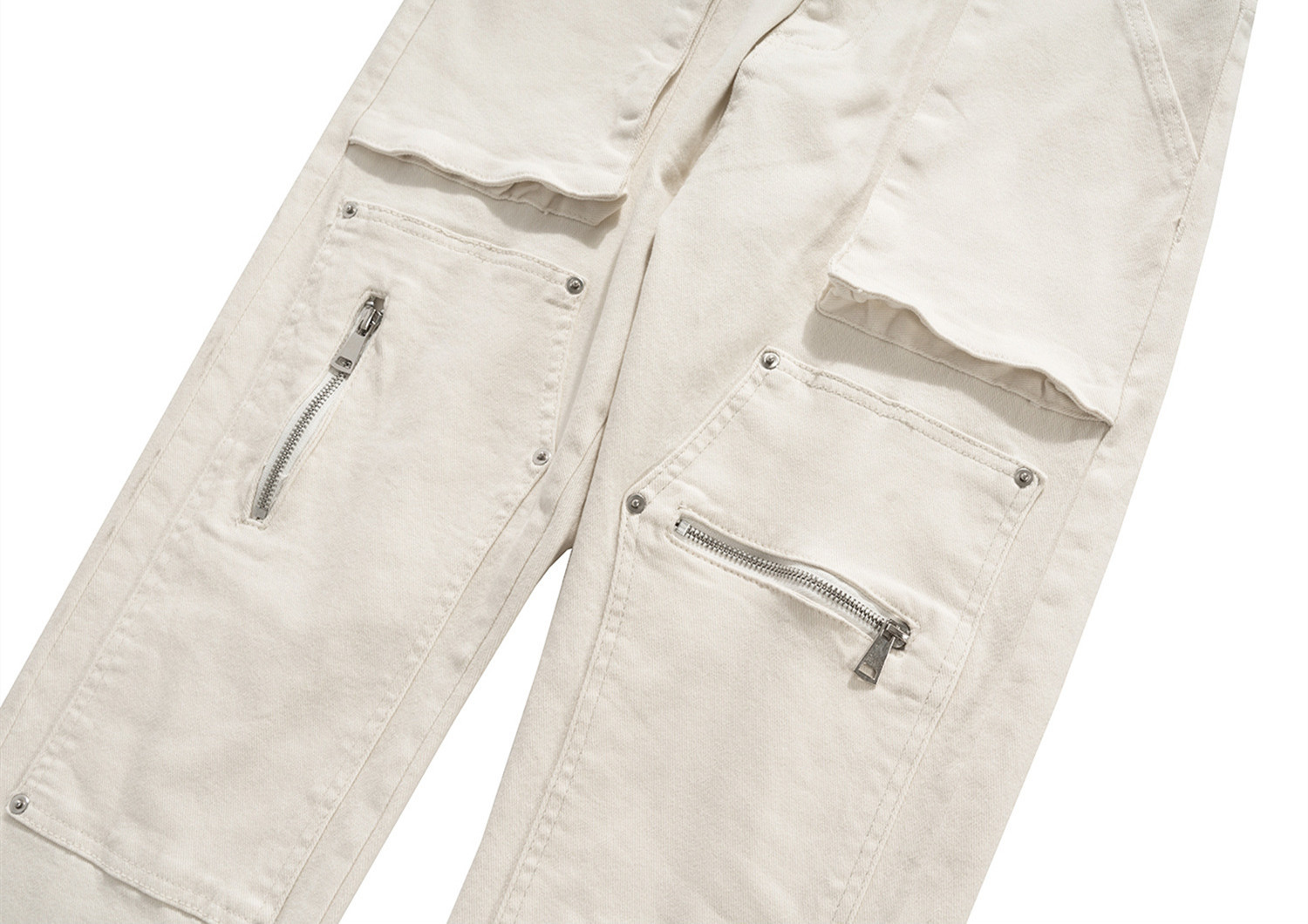 Mid-waist Slim Fit Trendy Men And Women Multi-zipper Jeans